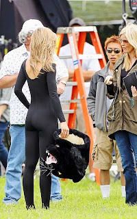 Now, AnnaLynne does not really look like a girl who tans very much, or very well for that matter, so I'm guessing this is more of a way of letting everybody within long range lens sight that she has one nice lean tall body. And I'd say that her little show was working, even without an (im)proper bikini bottom. Enjoy.